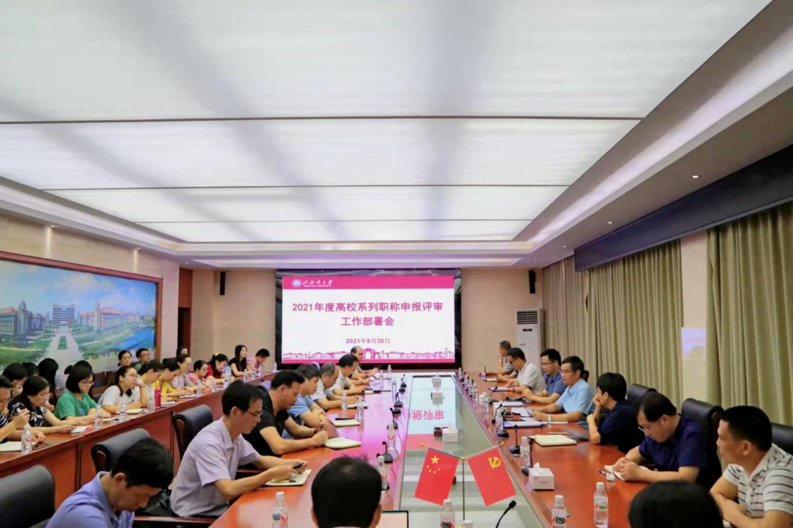 各二级学院(部),2021年有申报高校系列职称的行政、教辅等部门,宣传部、学工处、教务处、科技处、人事处相关负责人参会。(郑毅 摄)