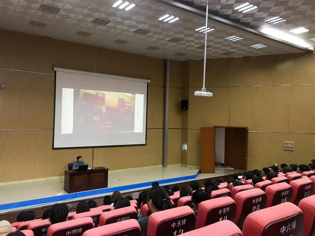 “中国共产党的党旗党徽是中国共产党的象征和标志,党旗曾在各个不同时期以不同的样式出现过,党旗党徽伴随并见证了中国共产党成长的光辉历程,不断发展变化并日臻完善。”周晓峰院长从艺术设计专业的角度切入,讲述中华人民共和国国旗、党旗和国徽的诞生、演变历程和蕴含的设计内涵。周院长还结合自身设计孔子学院标识的经历,启发和勉励当代大学生认真学习“中共党史、新中国史、改革开放史和社会主义发展史”,充分挖掘红色文化资源,把党史学习教育同艺术专业学习与创作紧密联系起来,铭记革命历史,只争朝夕不负韶华,扎实学好专业知识,努力拼搏,在中华民族伟大复兴的道路上贡献自己的青春力量。