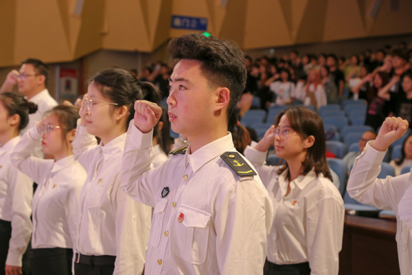 大会特别设置了入团仪式:面对鲜红团旗,新团员佩戴新团徽,老团员重温入团誓词。