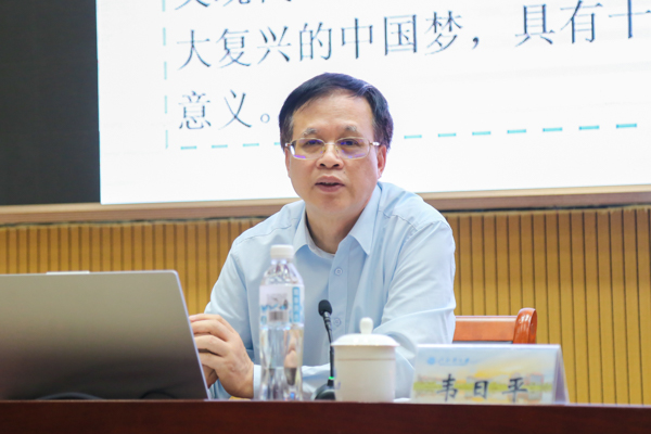 在报告中,韦日平强调指出,教育工作者要善于从对历史背景、党的根本性质和百年来党取得的优异成绩的系统联系和深刻分析中,引导青年学生学好党史、学懂党史,增强学生的民族自豪感和民族自信心。(林磊华 胡晨 摄)