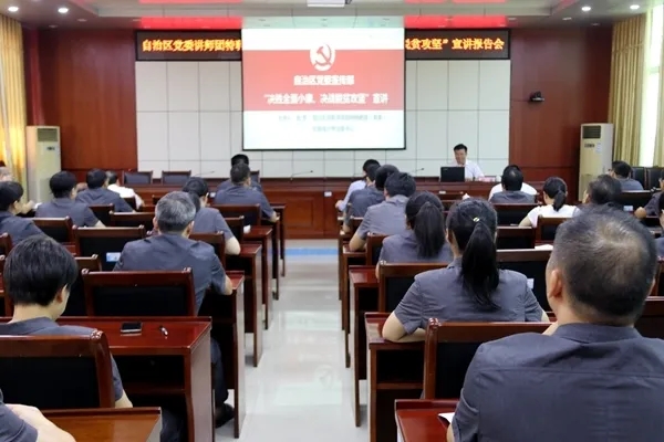 2020年是决胜全面建成小康社会、决战脱贫攻坚之年,为进一步让基层法院干警全面深刻理解贯彻落实习近平总书记在决战决胜脱贫攻坚座谈会上的重要讲话精神,如期夺取脱贫攻坚战全面胜利,9月28日,自治区党委讲师团特聘教授(专家)、学校党委书记赵君受邀赴浦北县人民法院新时代文明实践所做“决胜全面小康 决战脱贫攻坚”宣讲报告。县长李遥,县人民法院党组书记、院长钟宪林,县委宣传部副部长容传松及人民法院全体干警参加报告会。