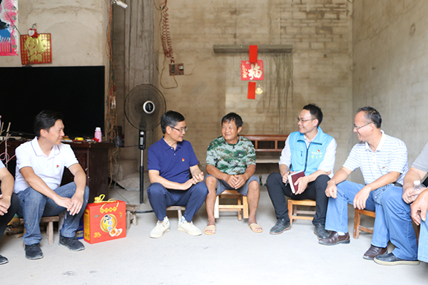 钦北区新棠镇南忠村“脱贫攻坚”主题党日活动中,陈锦山副书记走访慰问贫困户,为他们送上慰问品并详细了解生产生活状况、享受扶贫政策和干部帮扶等情况,鼓励他们努力发展特色产业,走上发家致富的道路。