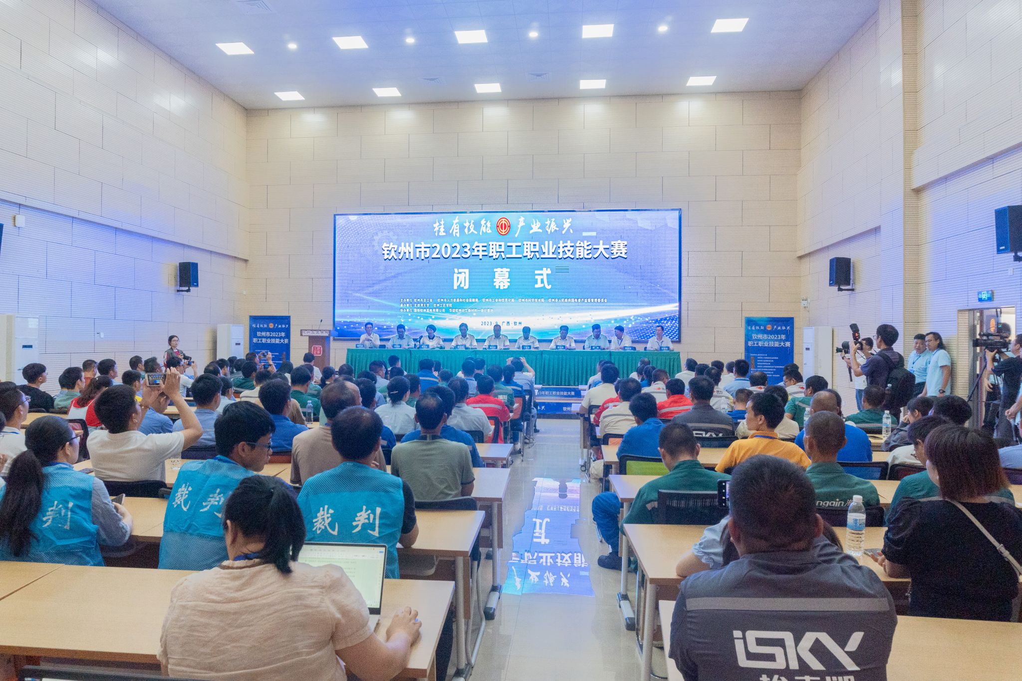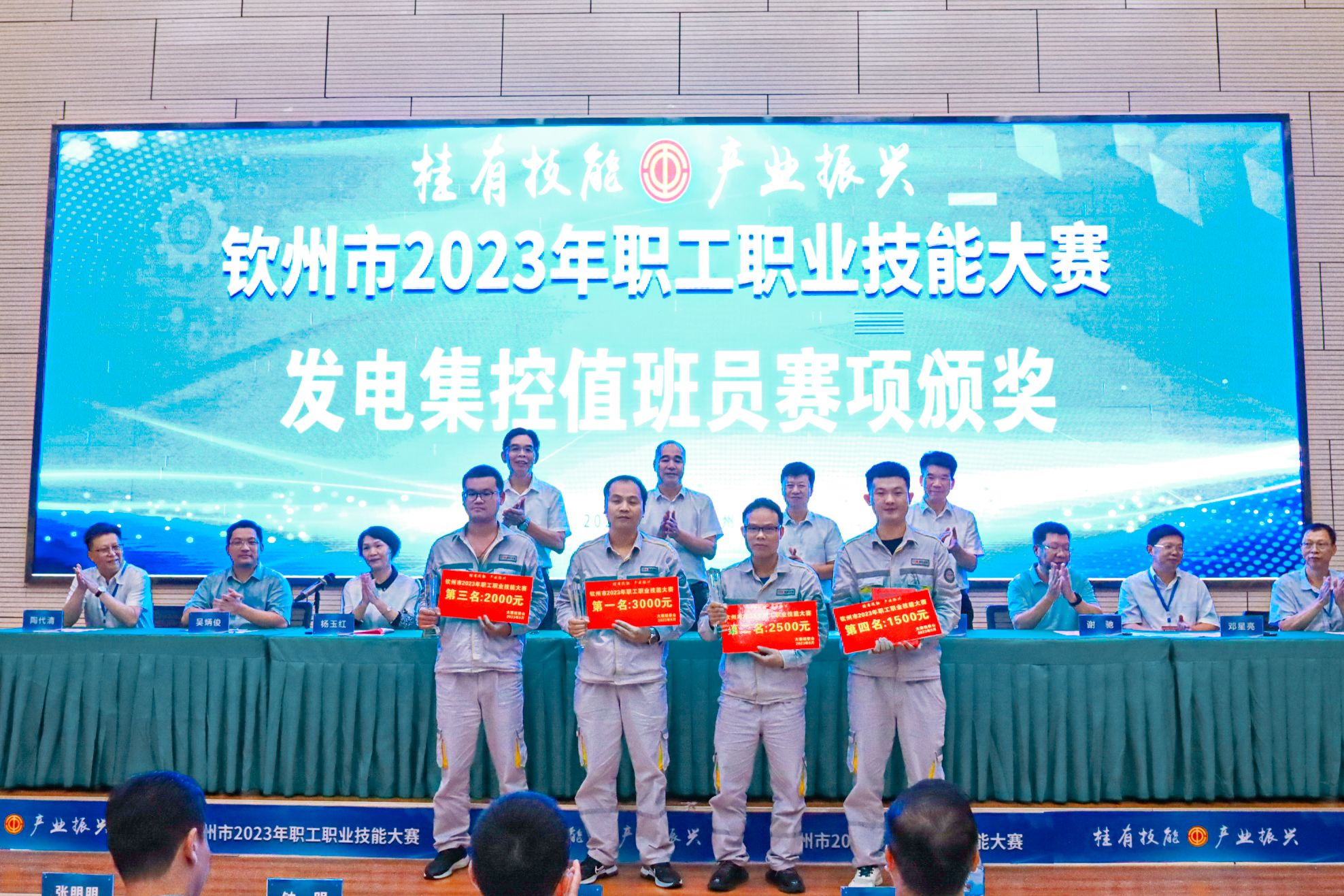 经过激烈的角逐,来自国投钦州发电有限公司,广西华谊新材料有限公司,中国石油天然气股份有限公司广西石化分公司,中国船舶集团广西造船有限公司等十余个单位的选手分别获得了化工总控工、水处理技术(工业废水处理工)、发电集控值班员、焊工、质检员、维修电工、车工等七个比赛项目(职业工种)的冠亚季军。