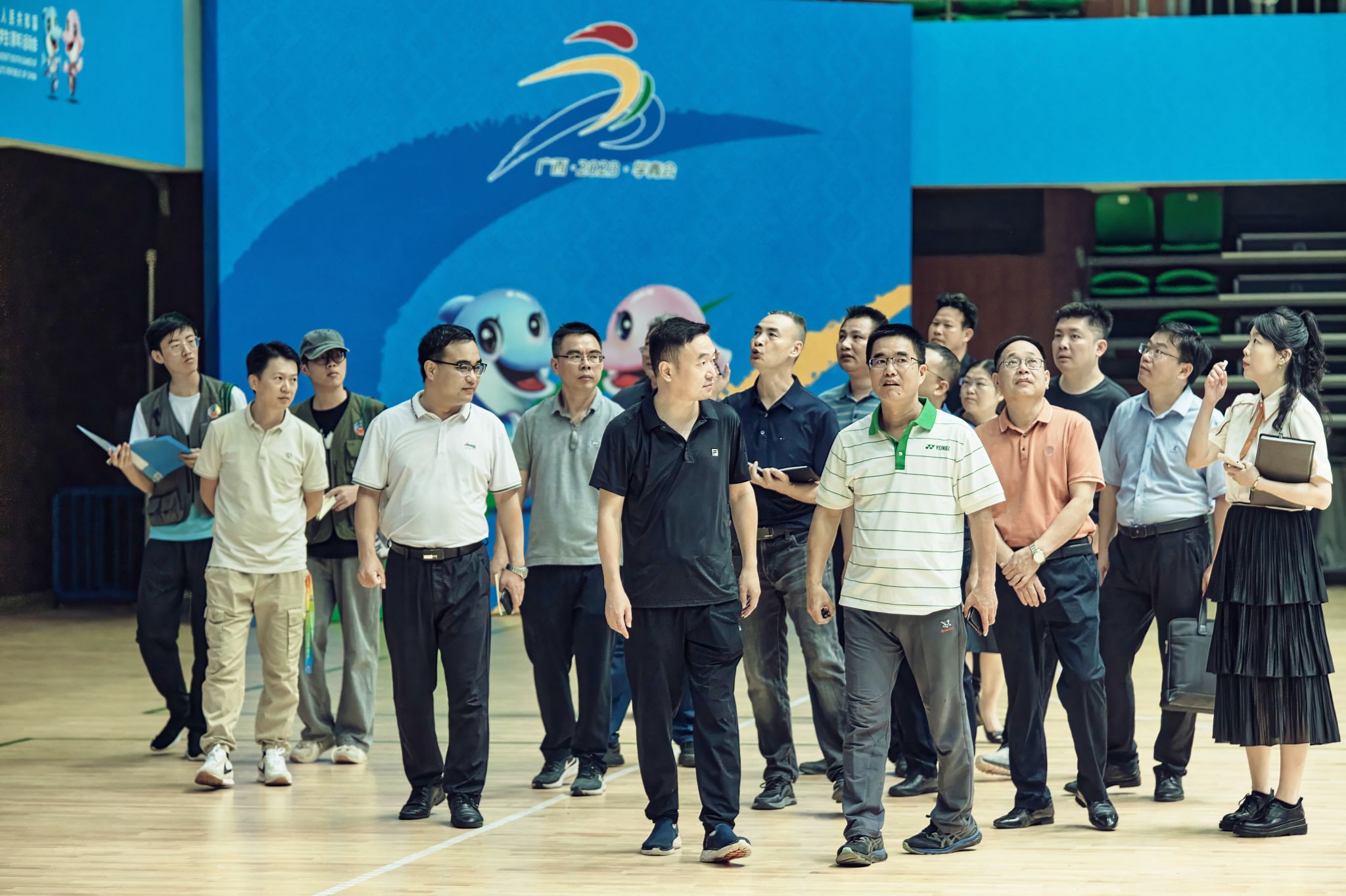 在体育馆内,苗剑实地考察了球员休息室、球员训练室、竞赛办公室等,详细了解运动会赛程安排与体育会场布置情况,并现场测试了赛场硬件设施和比赛器材的质量,对场地建设工作给予充分肯定。他表示,要在全校营造赛事浓厚氛围,高标准高质量做好学青会赛场各项筹备工作,为参赛队伍提供一个安全、高质量的比赛场所,全力以赴确保赛事安全圆满顺利举办。