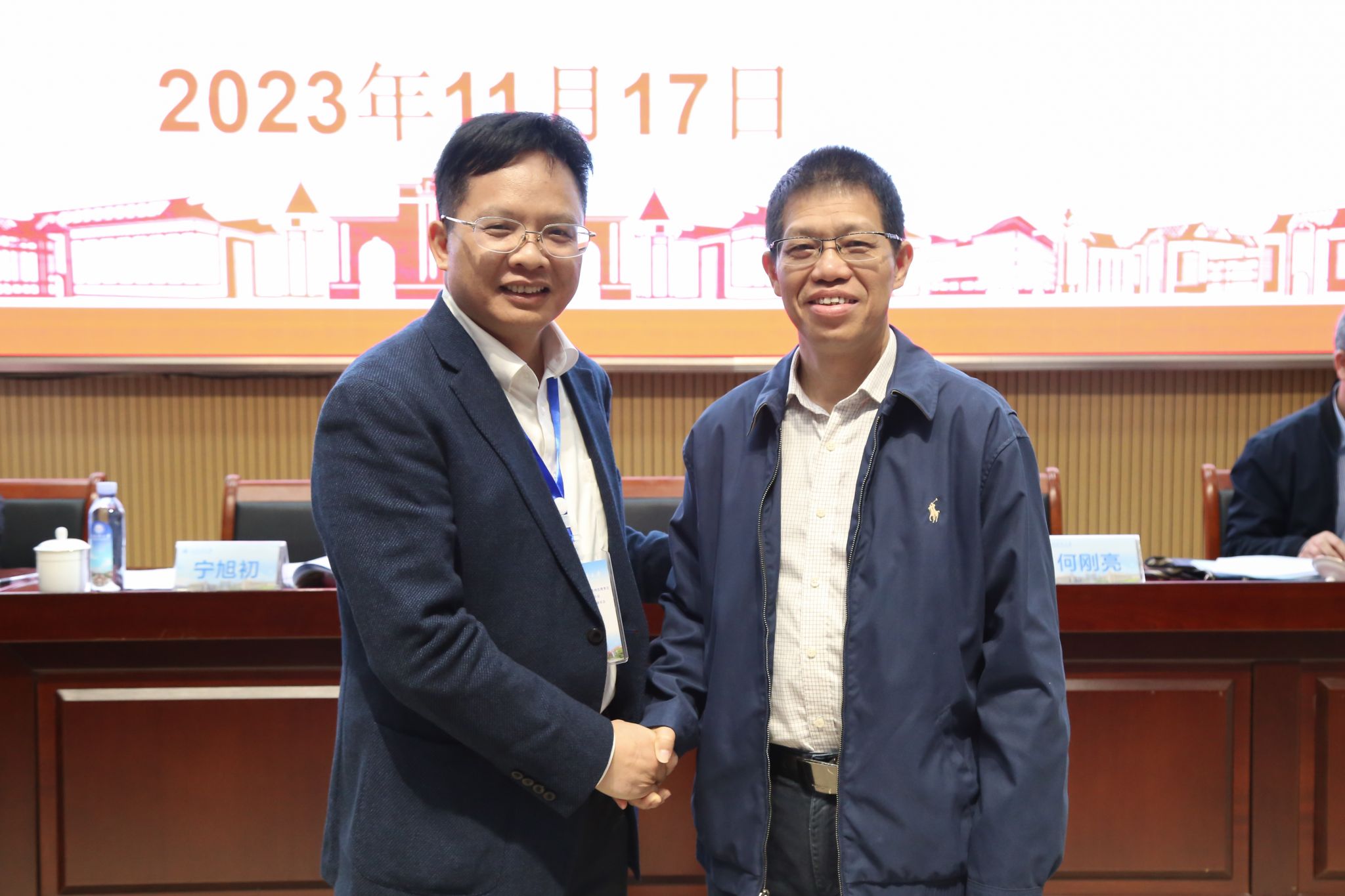 广西中医药大学副校长何刚亮(左)担任第九届理事会会长