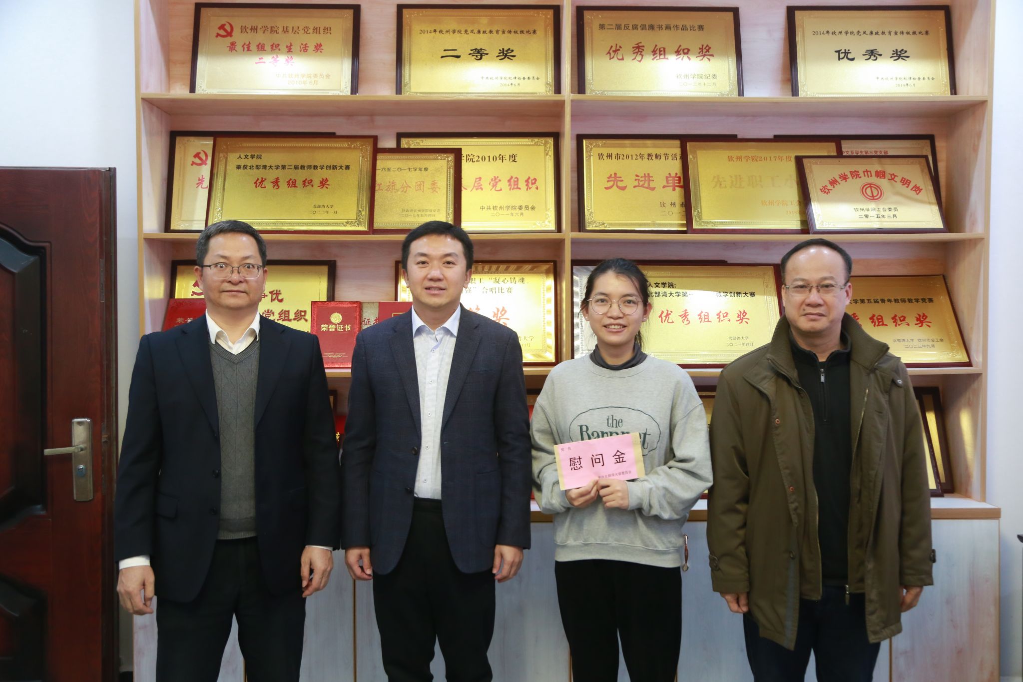 校党委副书记陈磊(左二)慰问人文学院学生代表