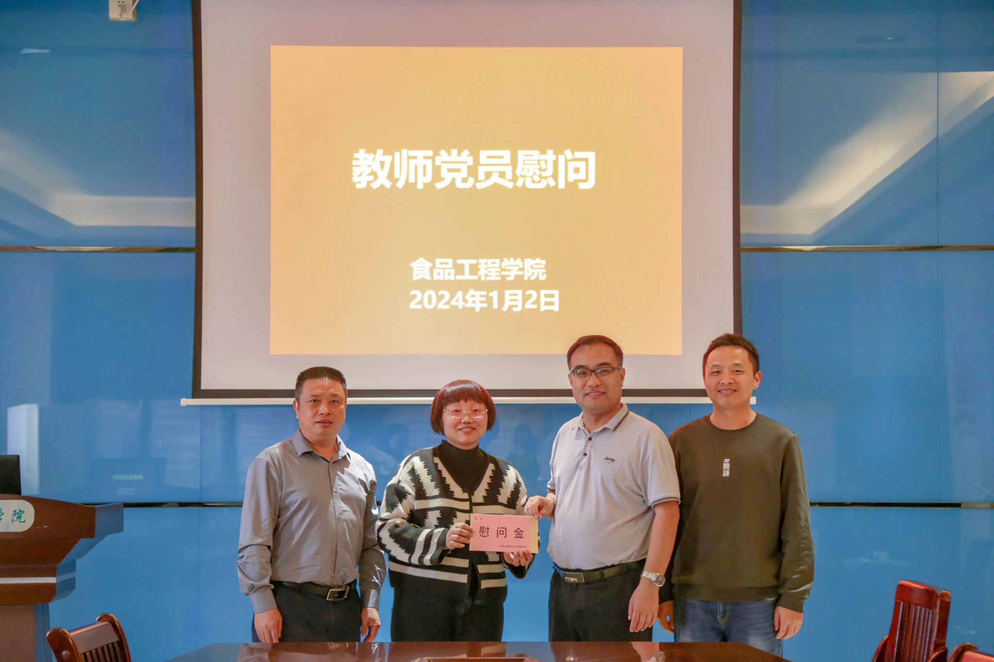 校党委常委、副校长马秀明(右二)慰问食品工程学院教师代表