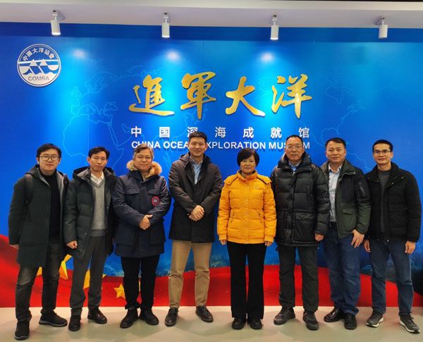 在国家深海基地管理中心,调研组就科考船支撑海上科研装备保障进行考察,双方就科考船战略合作展开交流。