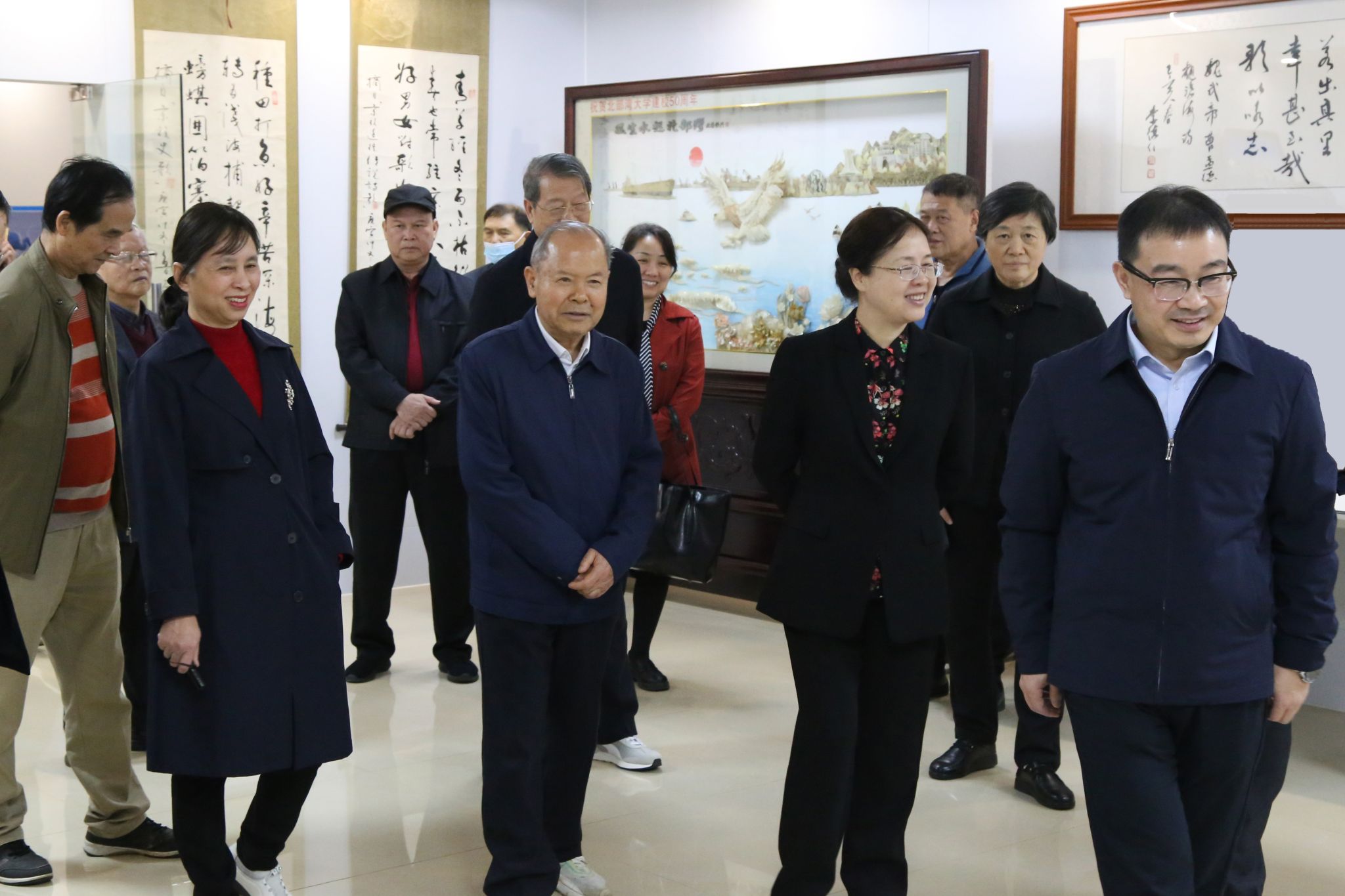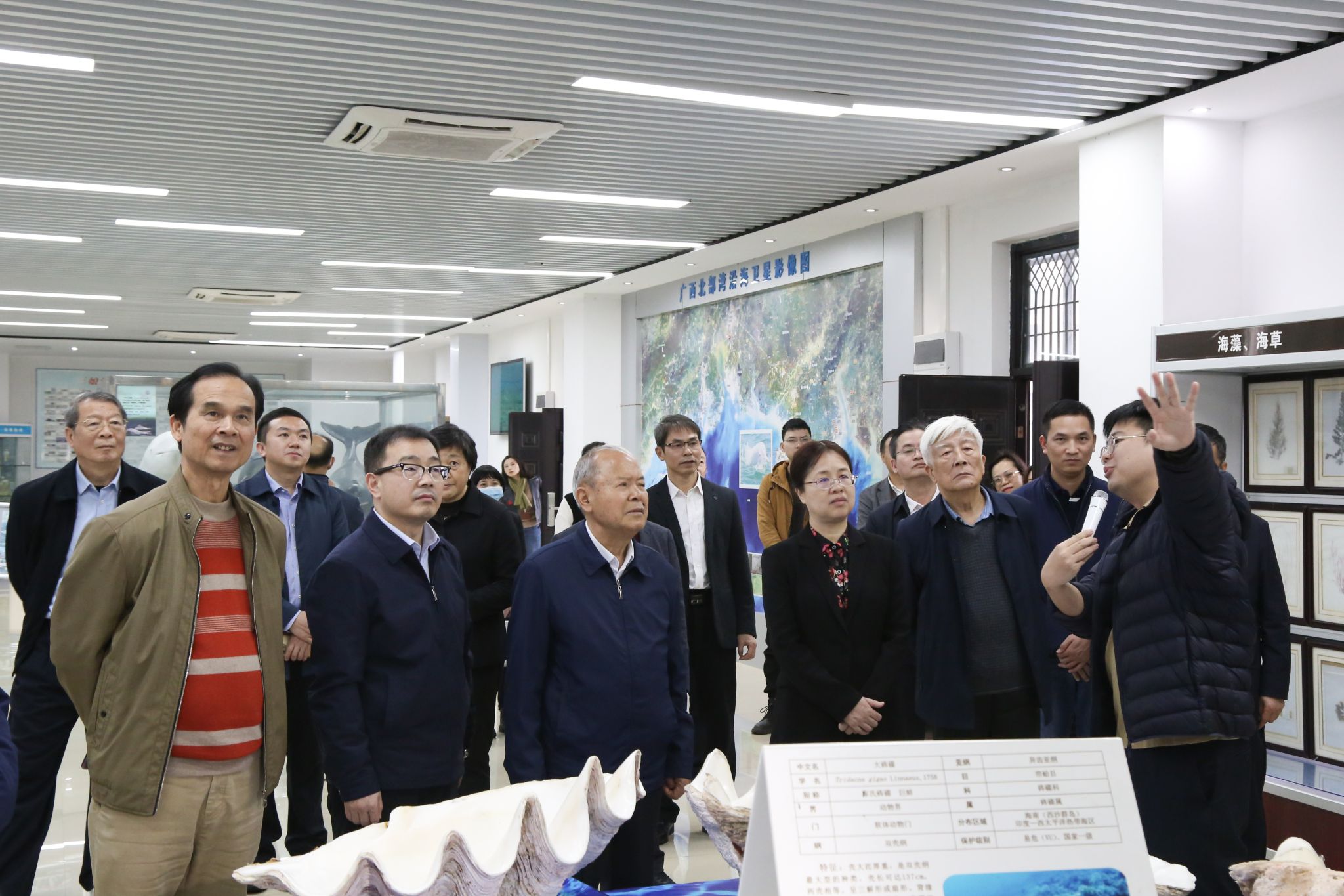 调研组一行实地调研了北部湾海洋博物馆、海洋学院标本馆,在北部湾海洋博物馆门口,张少康、钟畅姿、徐华蕊、市关工委常务副主任文瑞共同为全区关心下一代工作优秀品牌“老少牵手·点亮海洋科学梦”实践基地揭牌。