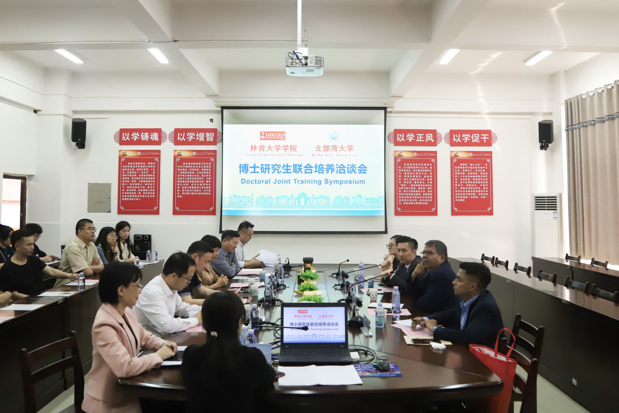 Amiya Bhaumik详细介绍了马来西亚林肯大学学院的基本情况和博士研究生培养模式,并表达了双方进一步加深合作的意愿。