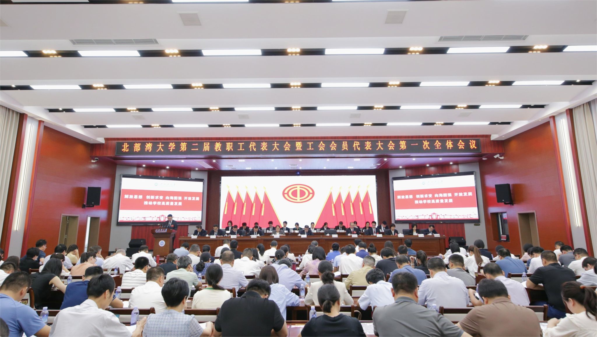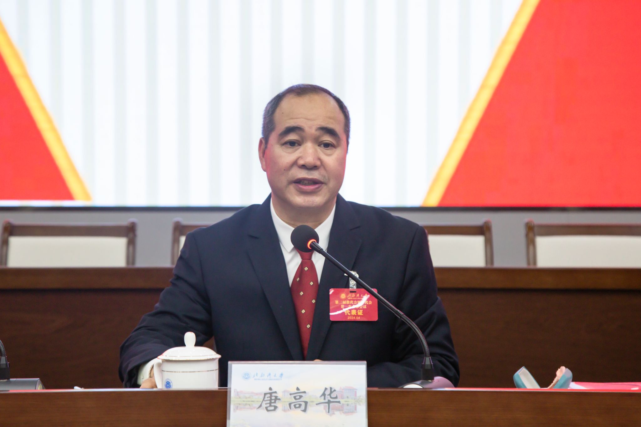 4月30日上午,学校第二届教职工代表大会暨工会会员代表大会第一次全体会议开幕式在办公楼一楼报告厅举行。全体在钦校领导出席大会,全体教职工代表,特邀代表,列席代表参加大会。校党委副书记唐高华主持。