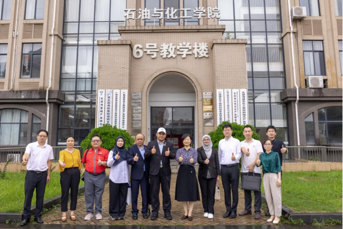 彭亨大学助理副校长萨其那和萨瑞奥博士、哈尔雅妮博士、胡伟思博士,学校教务处、科技处、国际交流处、石油与化工学院等相关负责人参加揭牌仪式。(庞小琴 摄)