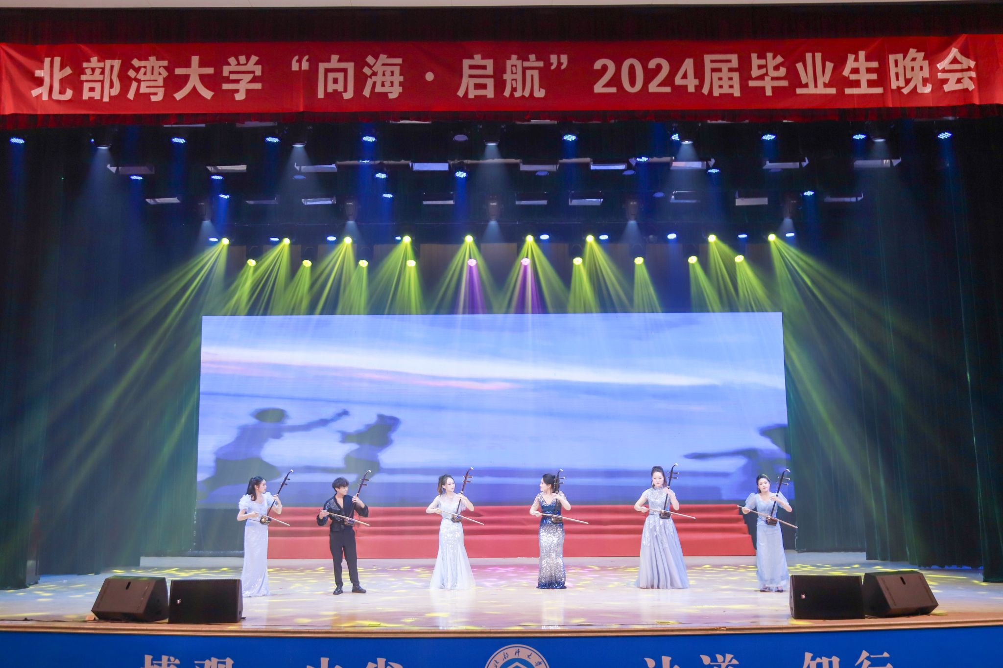 6月25日晚,pp模拟器游戏官网入口“向海·启航”2024届毕业生晚会在学校礼堂隆重举行。学校党委书记徐华蕊,校党委副书记唐高华、陈磊,校党委常委、副校长陆衡、马秀明、陈丹与广西华谊能源化工有限公司、中交天津航道局有限公司平陆运河项目部、长江航道局平陆运河项目部等校外嘉宾、1500余名毕业生及家长代表观看了晚会。