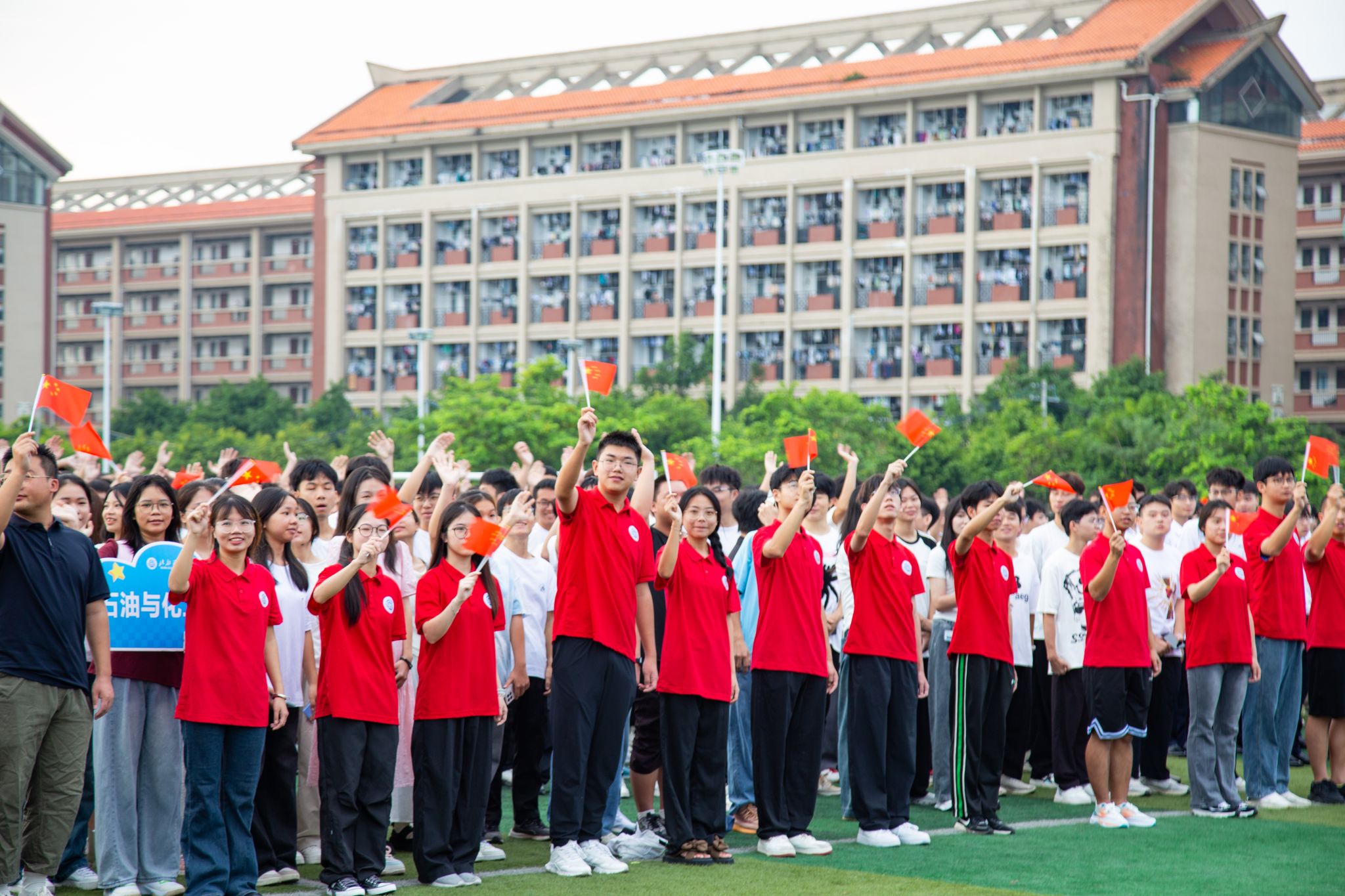 “我和我的祖国,一刻也不能分割……”在五星红旗下,在场全体师生共唱《我和我的祖国》,歌声悠扬响彻校园,表达对祖国的深情祝福。师生们纷纷表示,国旗下民族自豪感和爱国情怀油然而生,将以更加饱满的热情和更坚定的信念,为新时代强国建设贡献湾大力量,共谱盛世华章。(吴佳潞 韦巧丽 摄)