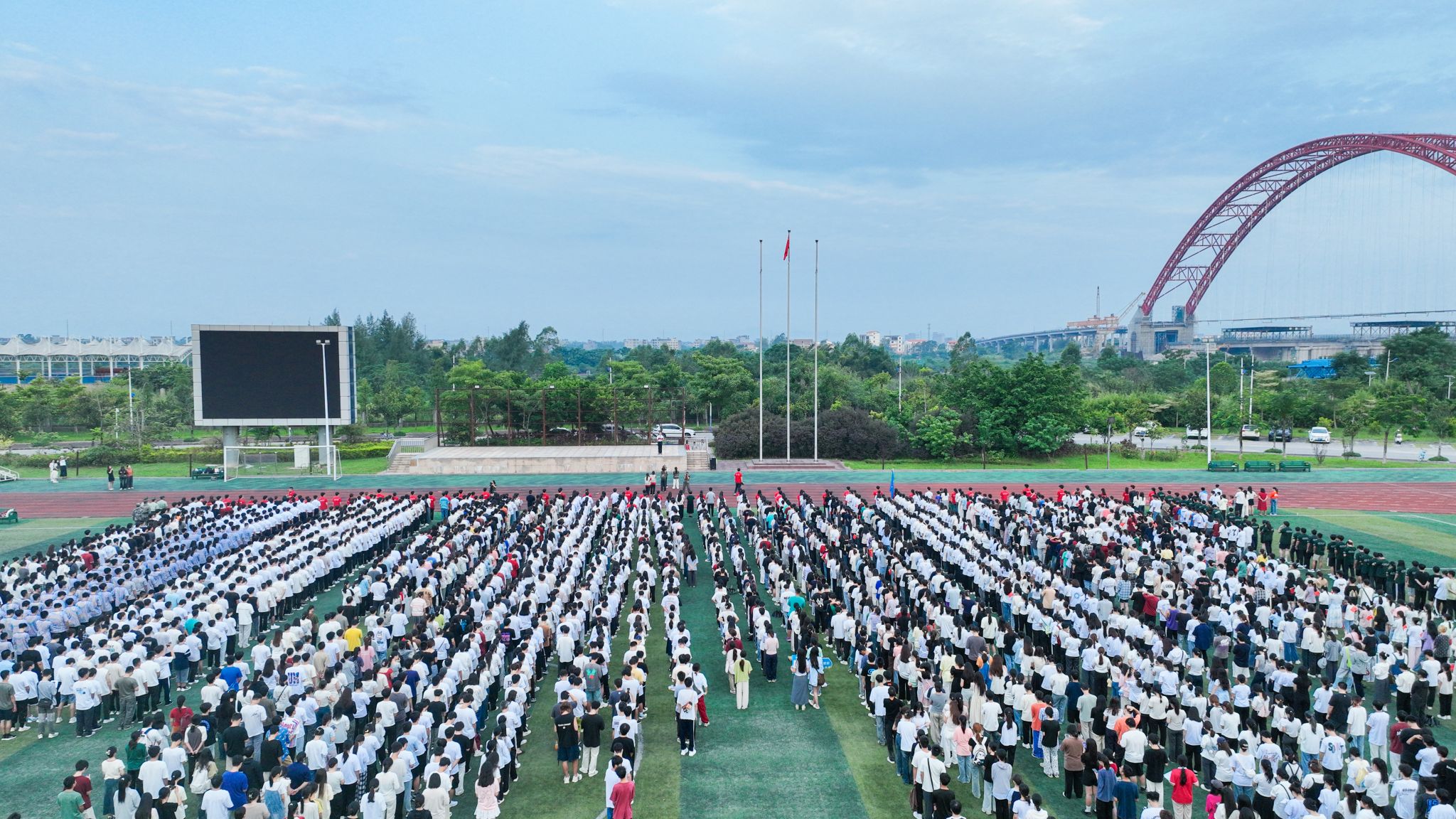 10月1日,pp电子在西区田径场举行升旗仪式,庆祝中华人民共和国成立75周年。
