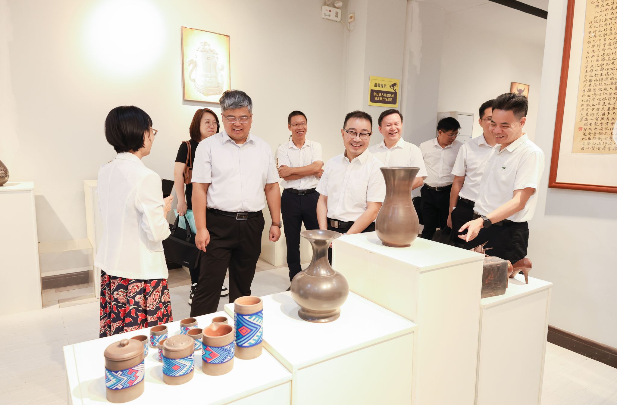 王文泽一行实地调研坭兴陶展厅
