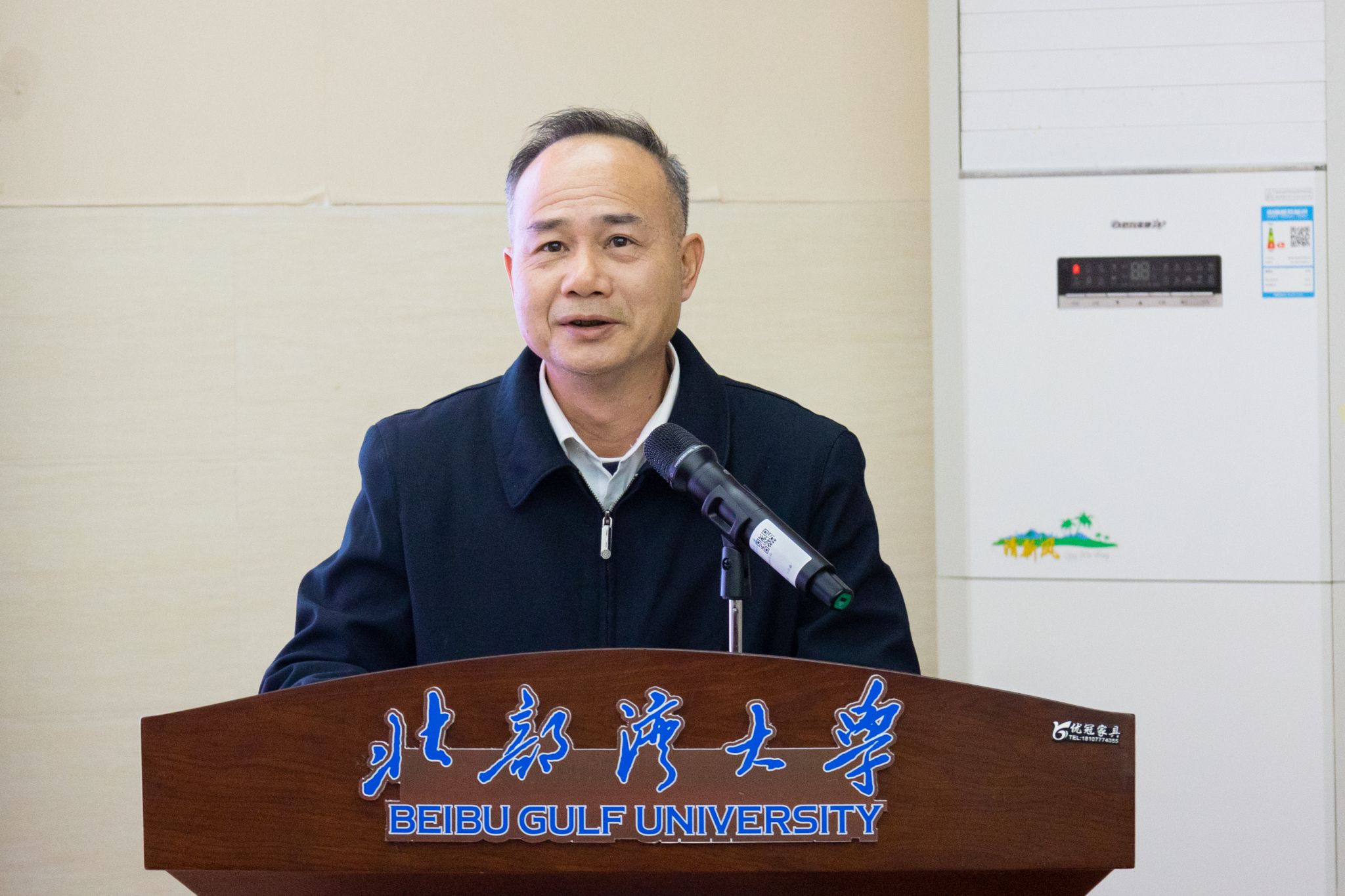梁华江对学校知联会成功换届表示祝贺,并代表钦州市党外知识分子联谊会宣读了贺词。(覃焕展 摄)