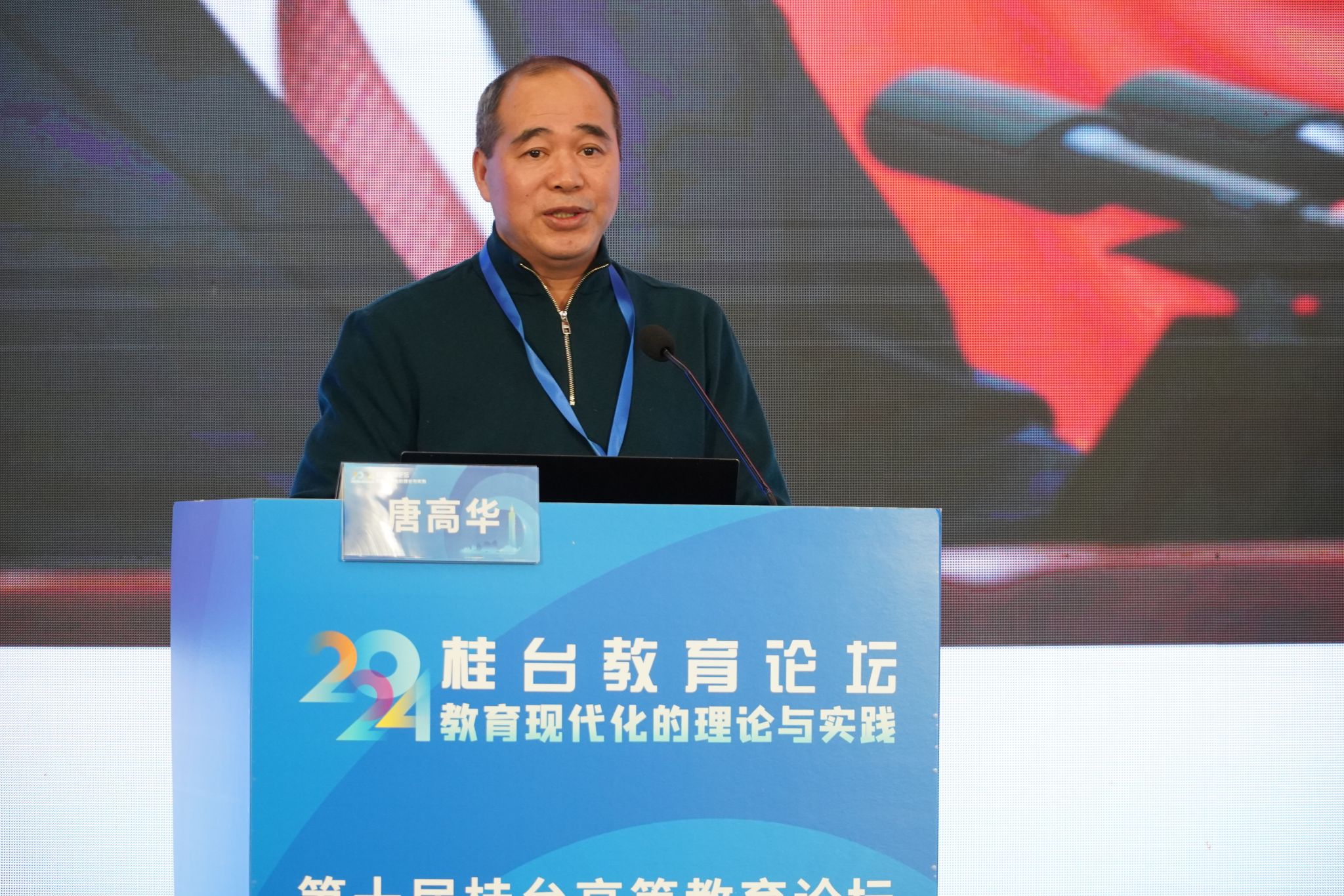 12月15日,2024年桂台教育论坛在桂林召开。本次论坛以“教育现代化的理论与实践”为主题,由自治区教师培训中心、台湾大中华文化教育交流协会主办,广西师范大学承办。自治区教育厅副厅长伍锦昌、广西师范大学校长孙杰远、台湾圣约翰科技大学校长唐彦博出席开幕式并致辞。pp电子党委副书记唐高华教授受邀出席本次会议,并在分论坛作主题报告。教务处、钦州发展研究院相关负责人随同参会。