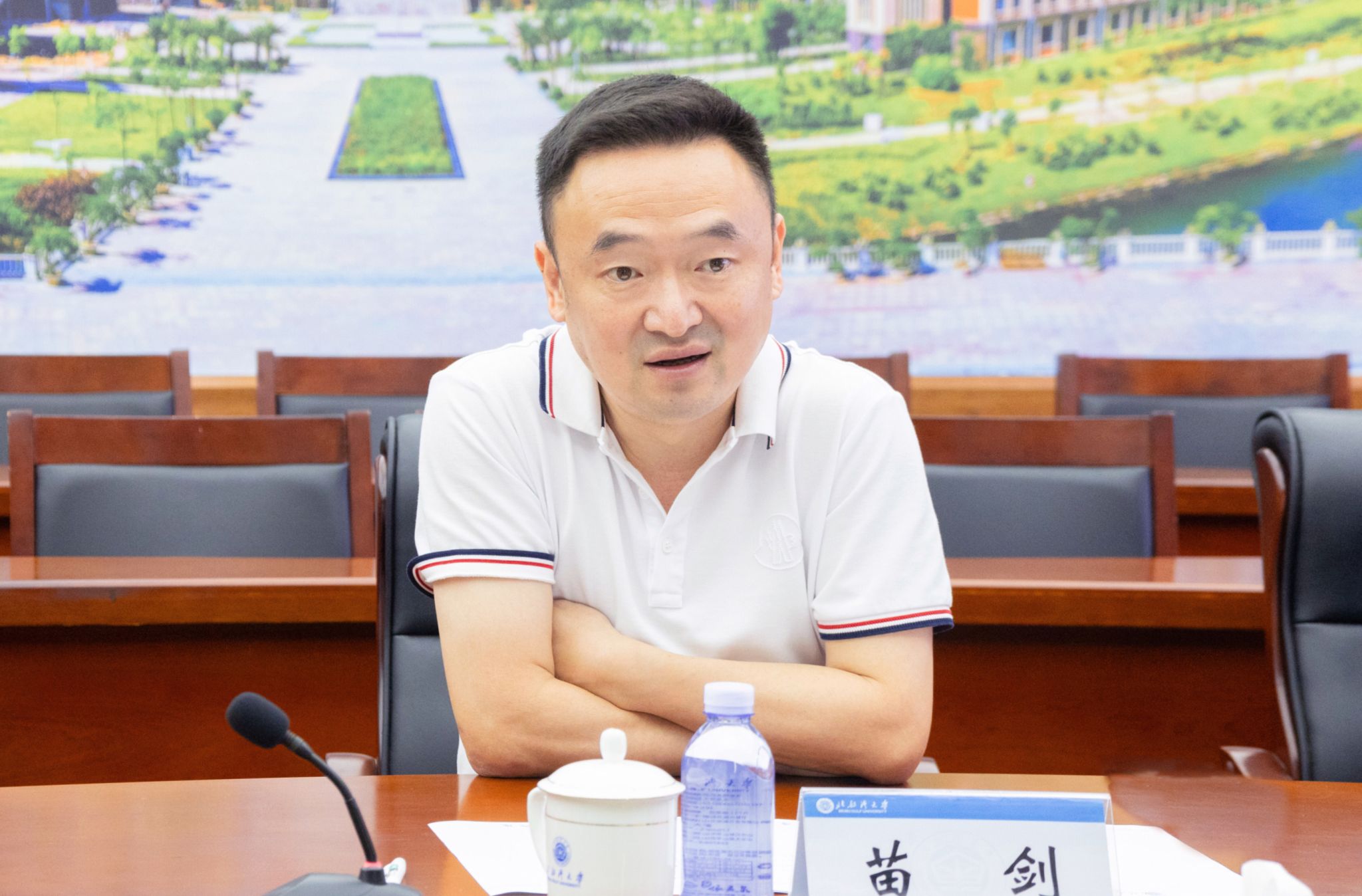 苗剑欢迎才智斌一行来访,介绍了学校在学科建设、人才培养、产教融合等方面的发展成效。他表示,学校重视与金融机构深化协同创新,在智慧校园建设、产学研平台搭建等领域拓展合作维度,通过金融科技赋能教育教学改革创新,提升人才培养质量和科技创新能力,共同推动区域社会经济高质量发展。