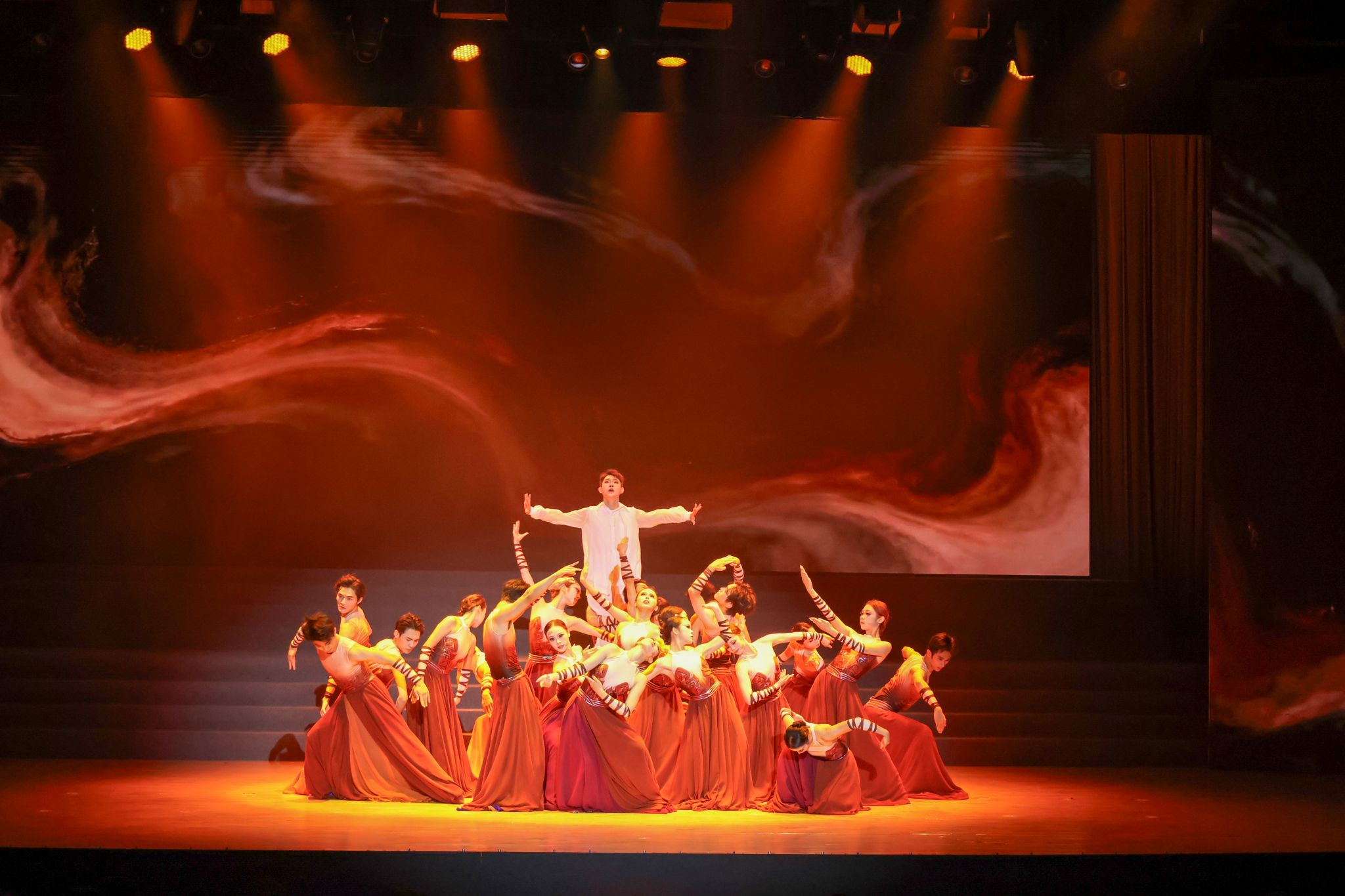 晚会分为《刘冯精神耀千秋》《革命火种播钦廉》《爱国拥军谱新篇》三个篇章。其中,pp电子音乐舞蹈学院师生主创或参演了开场歌舞《当那一天来临》等6个节目。铿锵激昂的歌声伴随富有力量的舞蹈,歌舞《当那一天来临》拉开了晚会序幕。舞蹈《塑泥·塑我》通过极具艺术性的优美舞姿展现坭兴陶奇妙的“塑造”之旅,诠释了在岁月砥砺下铸就坚韧灵魂的强大信念。情景剧《血色丰碑》以刚劲肢体与深情演绎,带观众重回战火年代——硝烟场景、舍生抗争、不屈信仰直击人心。合唱伴舞《假如战争今天爆发》展现了青年学子昂扬向上的精神风貌,彰显了中国人民捍卫和平和正义的必胜决心。歌舞《爱我人民爱我军》中动情的歌声唱出军民鱼水深情,激发了全场爱国拥军情怀。晚会在饱含着全场观众对祖国母亲深切热爱与美好祝福的《歌唱祖国》歌声中落下帷幕。