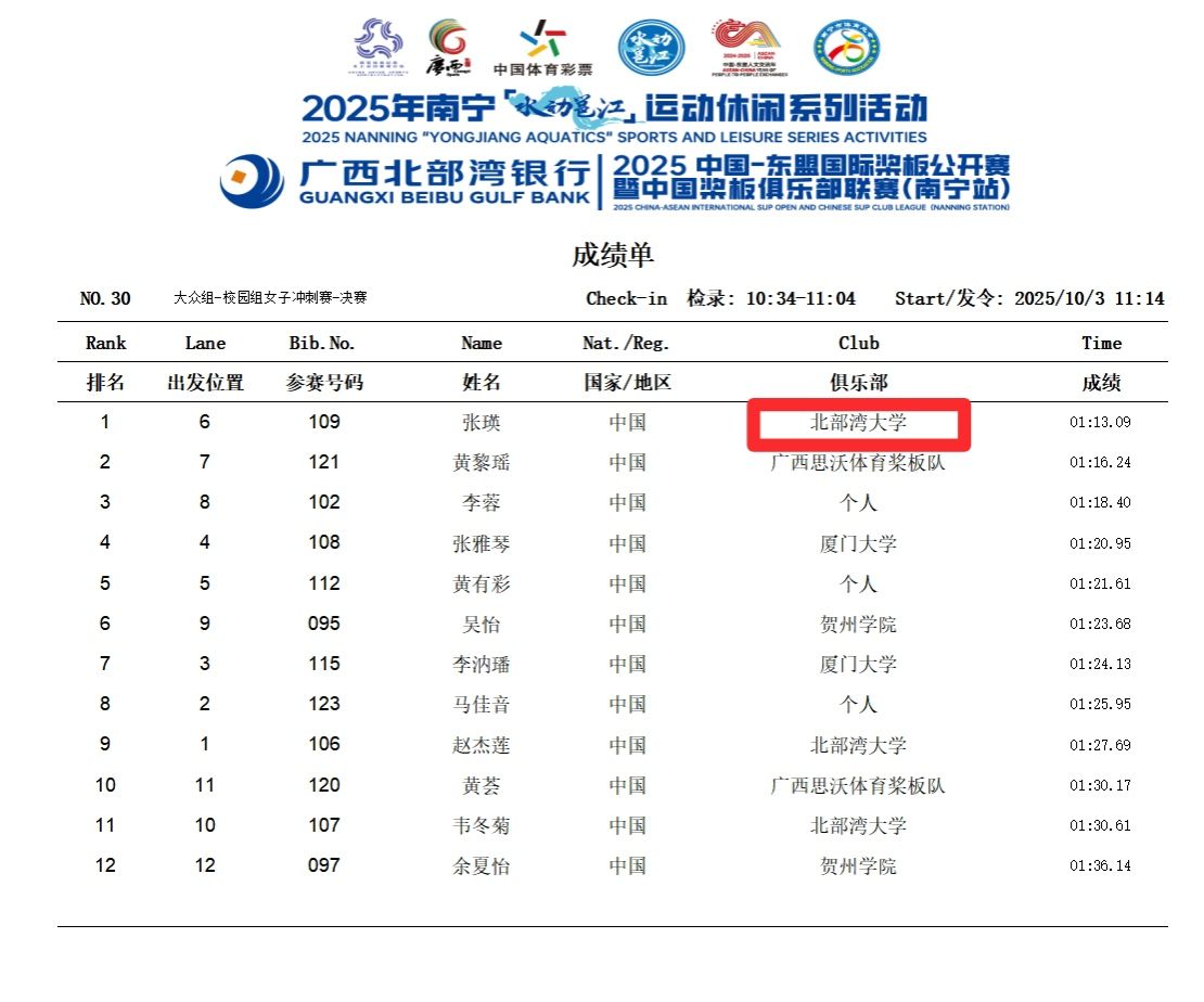 10月3日,2025中国—东盟国际桨板公开赛暨中国桨板俱乐部联赛(南宁站)在南宁市南湖公园圆满落幕。本次赛事汇聚国内外约700名选手同场竞技。pp模拟器游戏官网入口桨板队在领队唐明欢与主教练宁志的带领下发挥出色,斩获大众组-校园组200米冲刺赛男、女双项冠军等多项佳绩,充分展现了pp电子学子顽强拼搏、昂扬向上的精神风貌。
