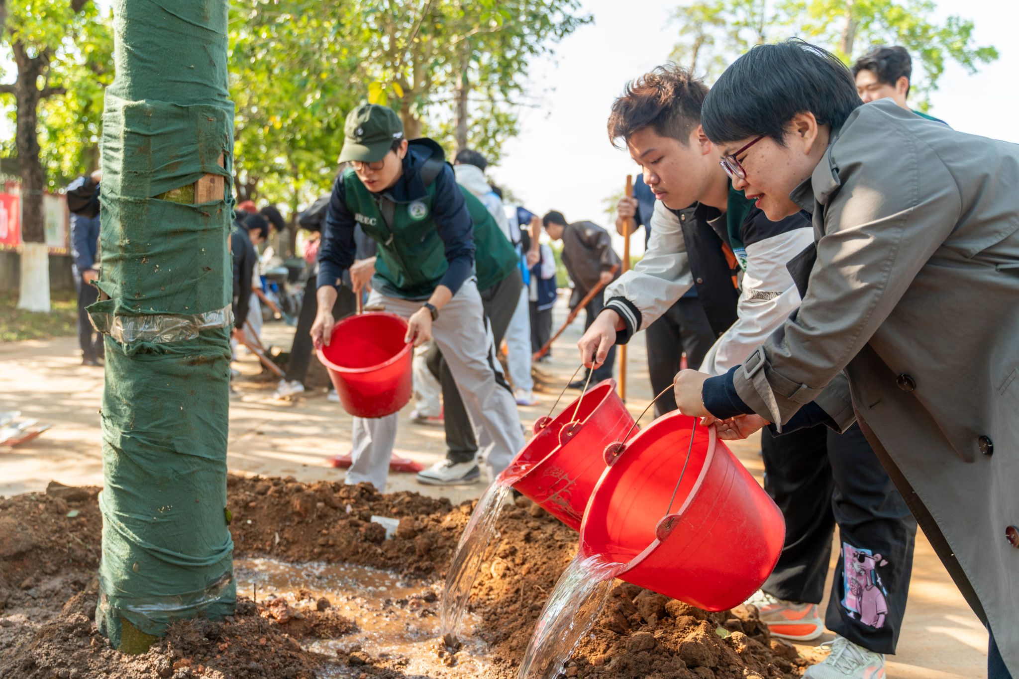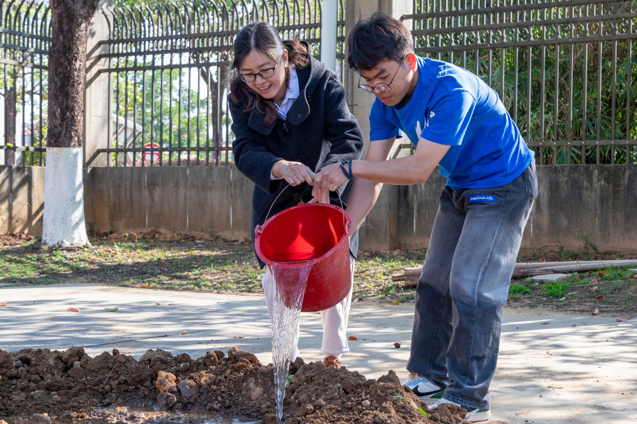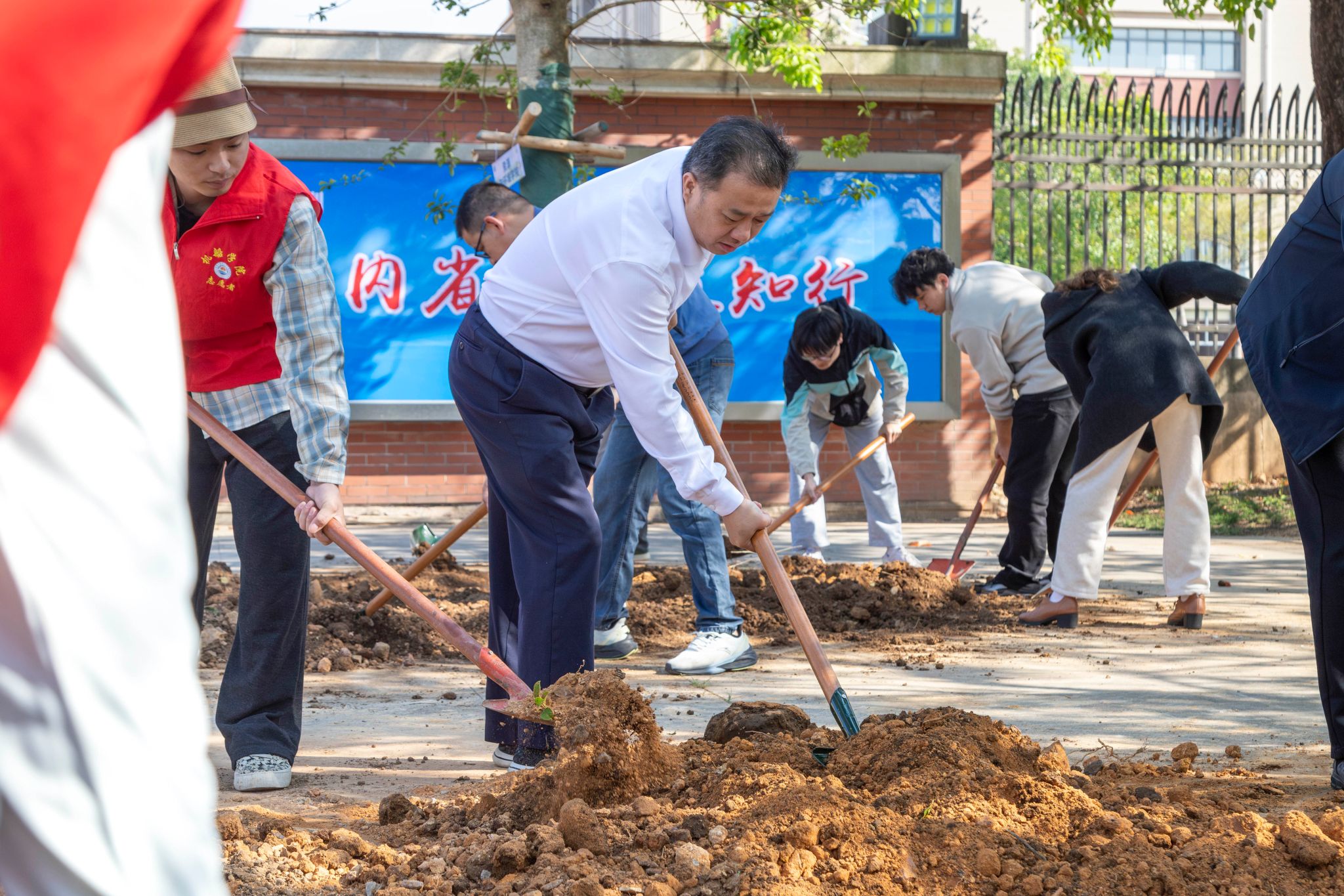 活动现场,师生们在专业人员的指导下分工协作、配合默契。挥锹铲土、扶苗填坑、围堰浇水,每一道工序都细致认真,现场井然有序,洋溢着热火朝天的劳动氛围。经过辛勤劳作,师生们携手栽下龙胆树、白玉兰20余棵。“以前只是知道植树节,今天自己拿起铁锹,培土浇水,才真正感受到种下一棵树的分量。”现场一位同学感慨地说。