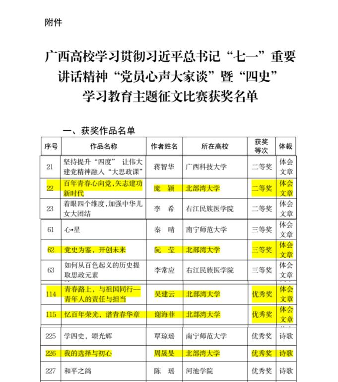 pp电子《百年青春心向党,矢志建功新时代》《党史为鉴,开创未来》分别获“体会文章”类二等奖和三等奖,《青春路上,与祖国同行——青年人的责任与担当》《忆百年荣光,谱青春华章》同获“体会文章”类优秀奖,《我的选择与初心》获“诗歌”类优秀奖。