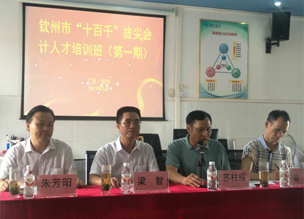 5月20日下午,钦州市遴选的49名拔尖会计人才培训学员来到经济管理学院开始为期5天的培训学习。pp模拟器游戏官网入口总会计师梁智,经济管理学院院长朱芳阳受邀参加开班仪式。