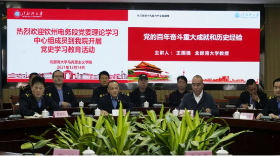 12月14日上午,广西沿海铁路公司钦州电务段党委理论学习中心组(扩大)到校与马克思主义学院联合开展党史学习教育。