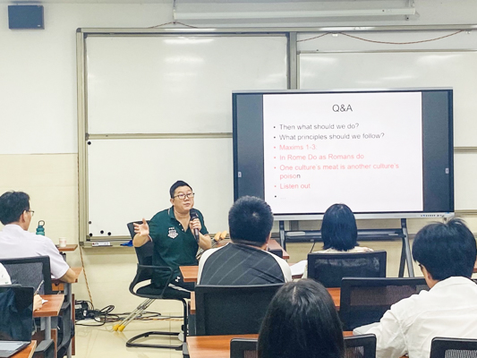 据悉,此次培训旨在提高学校双语教师和全英教师授课能力,提升双语课程和全英课程授课水平,在打通青年教师成长通道的同时,助力学校国际化办学水平提升,打造双语和全英授课品牌。培训班主要内容包括教学大纲、教案设计,全英文课堂组织、课堂管理、情感态度,跨文化交际及社交礼仪等。形式包括小班讨论、模拟课堂教学展示、评教讨论、情境扮演等。