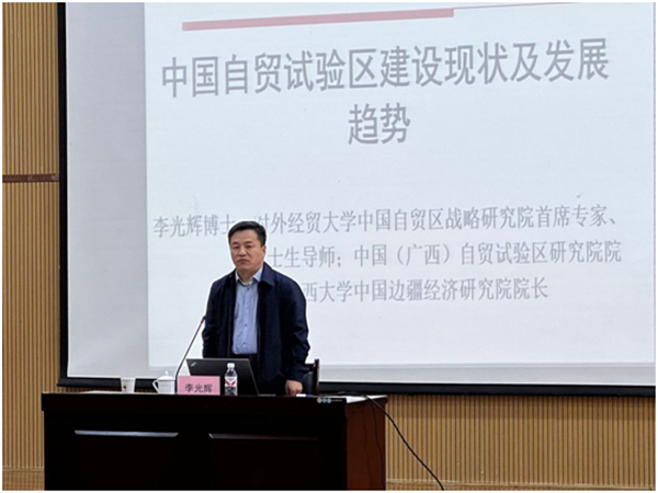 李光辉院长以“中国自由贸易试验区建设的现状及发展趋势”为题做学术报告