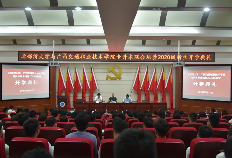 9月14日,pp电子“专升本”联合培养2020级新生开学典礼分别在合作院校广西水利电力职业技术学院、广西交通职业技术学院隆重举行。学校副校长唐高华出席典礼。广西水利电力职业技术学院副院长蒋文沛、广西交通职业技术学院副院长陈海峰主持典礼。