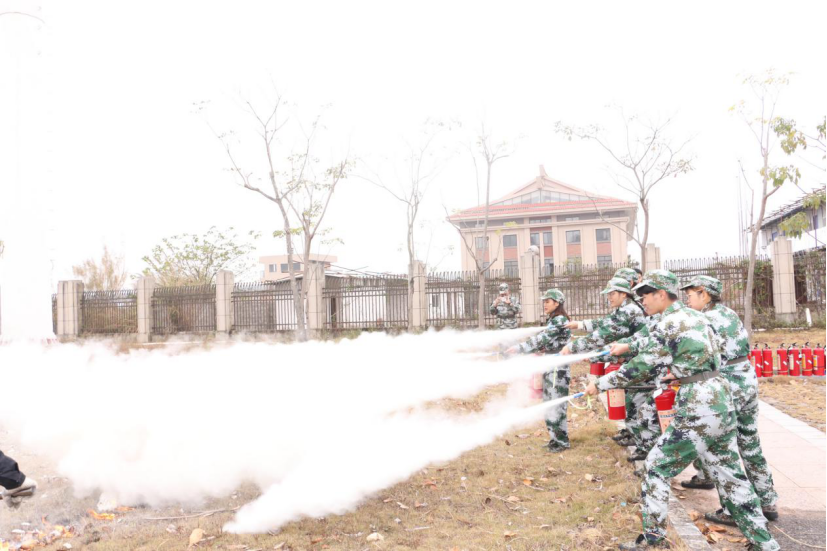 在消防演练中,同学们在消防科普教育馆进行模拟火灾场景体验,学习各种火场逃生技能技巧,并进行了火场逃生演练;在校园西区室外空地学习干粉灭火器操作方法,并进行了灭火演练。