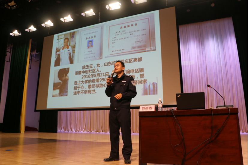 在治安安全讲座中,沙埠派出所警官围绕电信诈骗和校园不良网贷的概念、性质特征、常见形式、防范技能、补救措施进行了详细讲解。