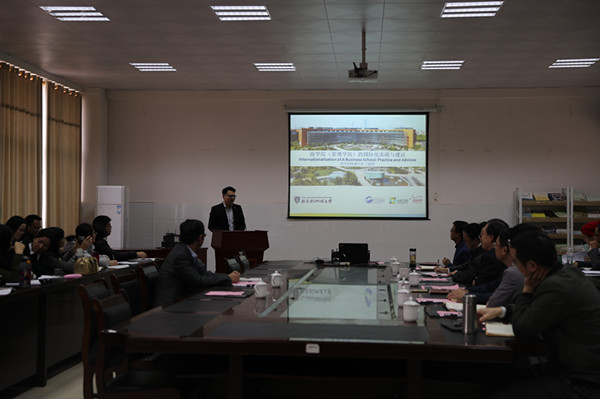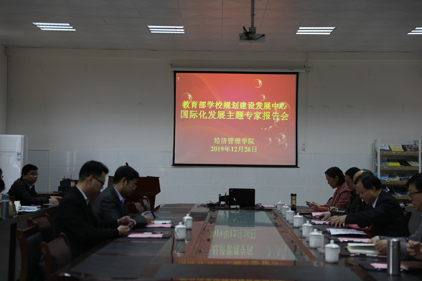 12月26日下午,教育部学校规划建设发展中心国际化发展主题专家报告会在pp电子经济管理学院301会议室举行,广西高校转型发展研究院、国际教育与外国语学院、经济管理学院等下相关领导出席报告会,经济管理学院和国外院的教师代表参加了报告会。报告会由经济管理学院院长朱芳阳主持。