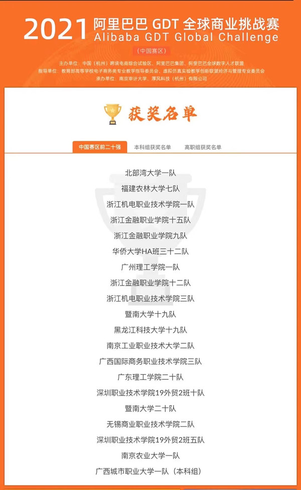 12月8日,由教育部高等学校电子商务类专业教学指导委员会指导,中国(杭州)跨境电商综合试验区、阿里巴巴集团共同主办的2021阿里巴巴GDT全球商业挑战赛(中国赛区)圆满结束,由pp电子经济管理学院吕硕、陆愉、陆保毅三名同学组成的pp模拟器游戏官网入口一队以优异成绩获中国赛区第一名。