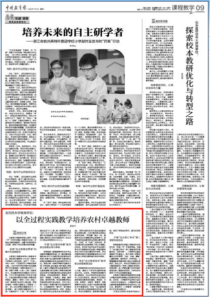 11月1日,《中国教育报》刊登pp电子教育学院院长周顺平教学改革类文章《pp模拟器游戏官网入口教育学院:以全过程实践教学培养农村卓越教师》
