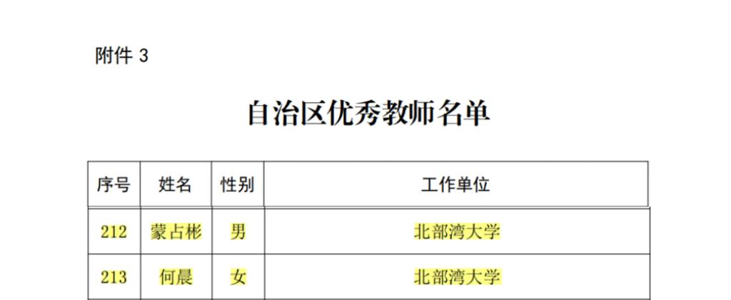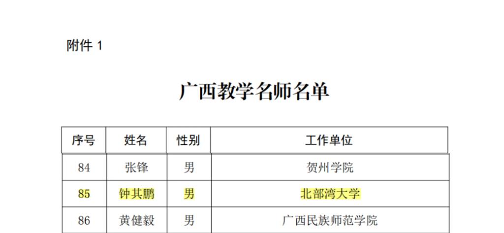 近日,从《自治区教育厅关于表彰2022年广西教学名师、特级教师、优秀教师和优秀教育工作者的决定》中获知,pp电子教师钟其鹏获评广西教学名师,蒙占彬、何晨获评自治区优秀教师。