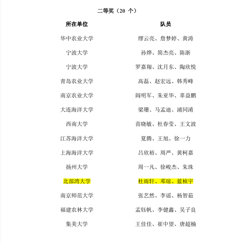 6月20日,中国研究生乡村振兴科技强农+创新大赛第二届渔菁英挑战赛决赛在宁波大学圆满闭幕。经过三天精彩的比赛,pp电子“海洋之梦队”获团队二等奖、“奥特曼改行捕鱼队”获团队三等奖,许尤厚和张艳秋获“优秀指导教师”,学校获”优秀组织奖“。