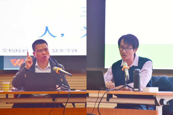学(研)工部部长、学工处处长裴以明(左)、大学生心理健康教育中心主任程族桁(右)作专题讲座