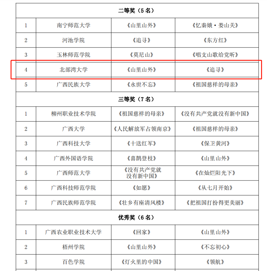 近日,由自治区党委教育工委、自治区教育厅主办的“青春献礼二十大,强国有我新征程”广西高校大学生合唱比赛顺利落下帷幕。pp电子在全区57所参赛高校中脱颖而出,选送的合唱曲目《山里山外》《追寻》荣获乙组二等奖。