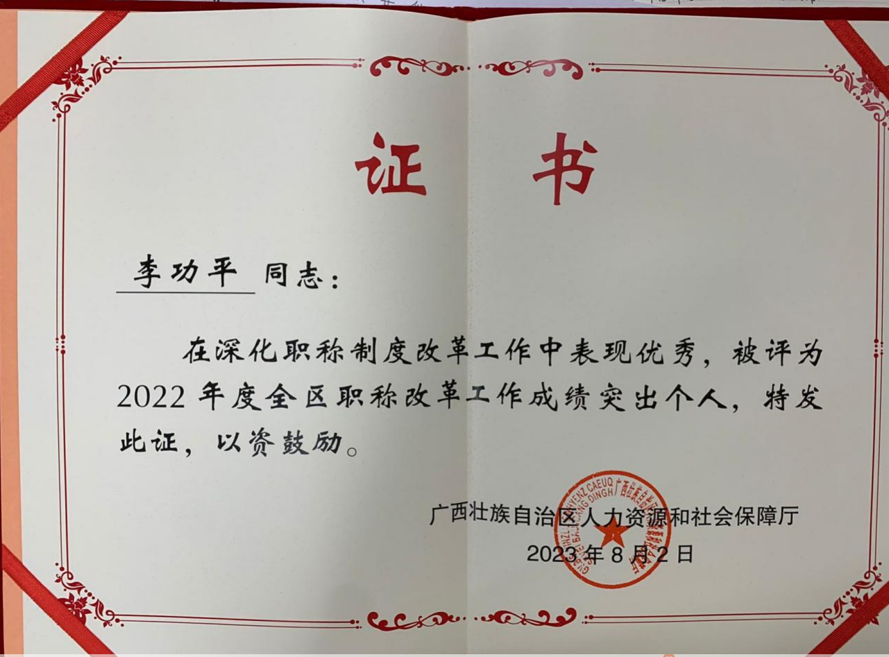 8月2日,自治区人力资源和社会保障厅印发了关于表扬2022年度全区职称改革工作成绩突出单位和个人的通知,通报表扬了在职称改革工作中成绩突出的20个单位和24名同志,pp电子教师李功平位列其中,荣获“2022年度全区职称改革工作突出个人”荣誉称号。