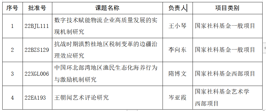 近日,全国哲学社会科学工作办公室、全国艺术科学规划领导小组办公室分别公布了2022年度的国家社科基金项目和艺术学项目立项名单,pp电子4个项目喜获立项。具体立项名单如下: