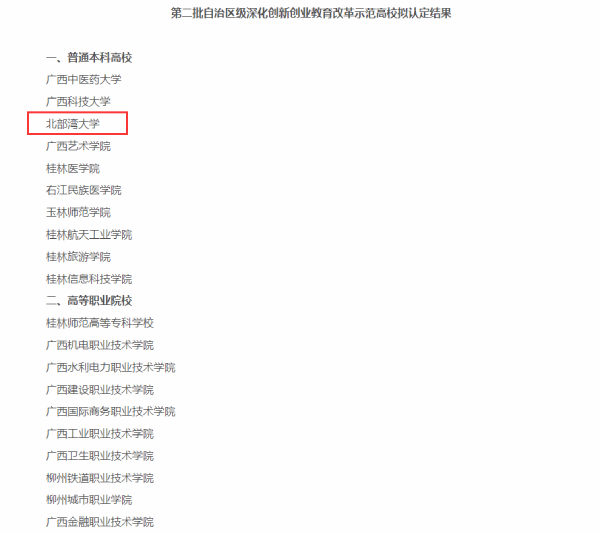 第二批自治区级深化创新创业教育改革示范高校认定结果