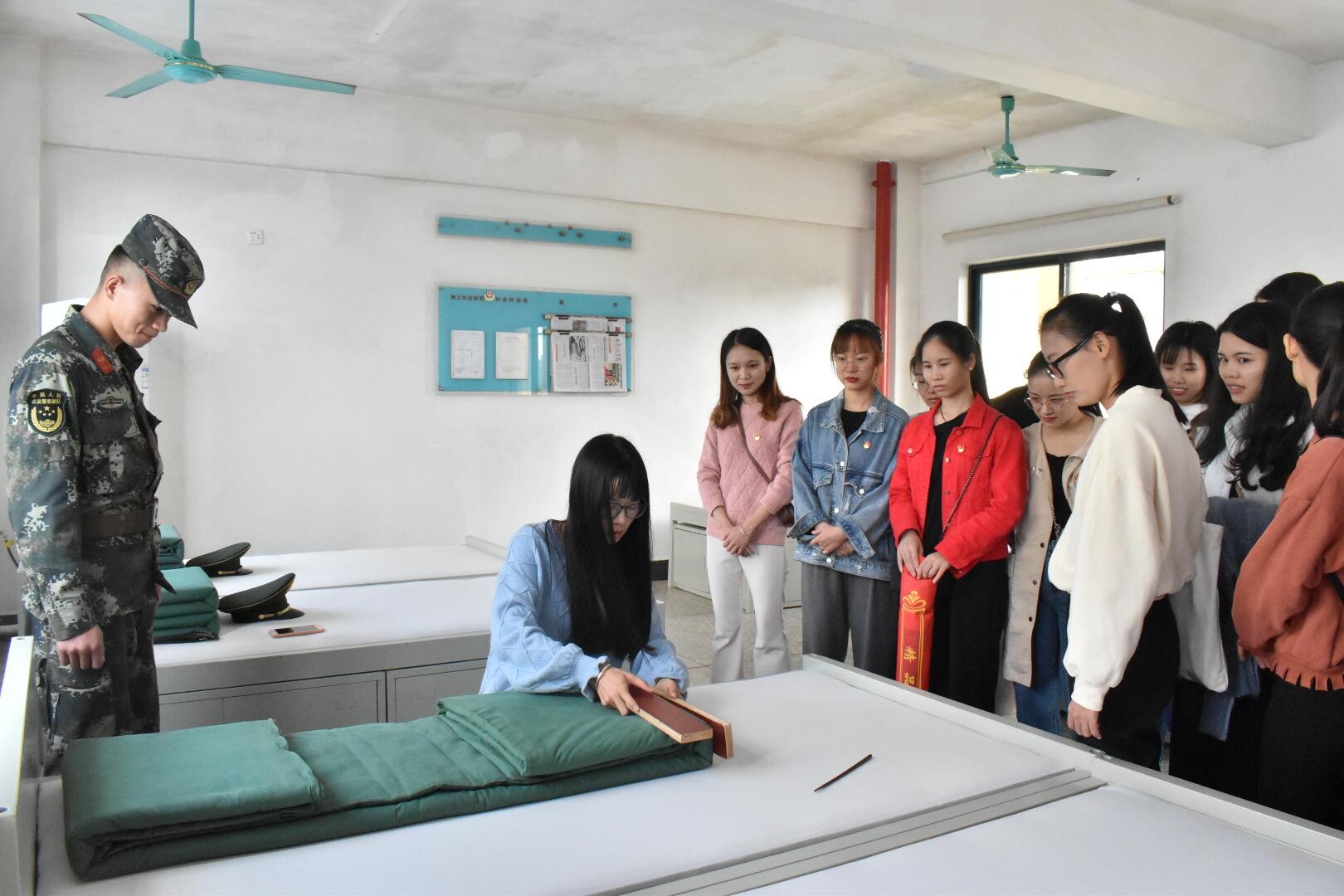 活动分为四项议程。在中队战士的组织带领下,党员们首先来到攀登楼前,观看了特战训练。随后,党员们移步中队荣誉室,听着战士讲解、看着满墙荣誉和电视中投放的实训图片,大家格外专注。参观内务,战士向党员们展示了叠“豆腐块”的步骤,同学们跃跃欲试,认真仔细的样子也赢得了战士的点赞。参观完毕,党员们和中队战士一齐到学习室观看了中央七套原中队干部陆玉华《军旅人生》纪录片、实战演习新闻报道,听取了优秀党员战士分享从军故事。最后,学院党委副书记陈鹏作总结发言,并代表学院党委向中队送上锦旗。
