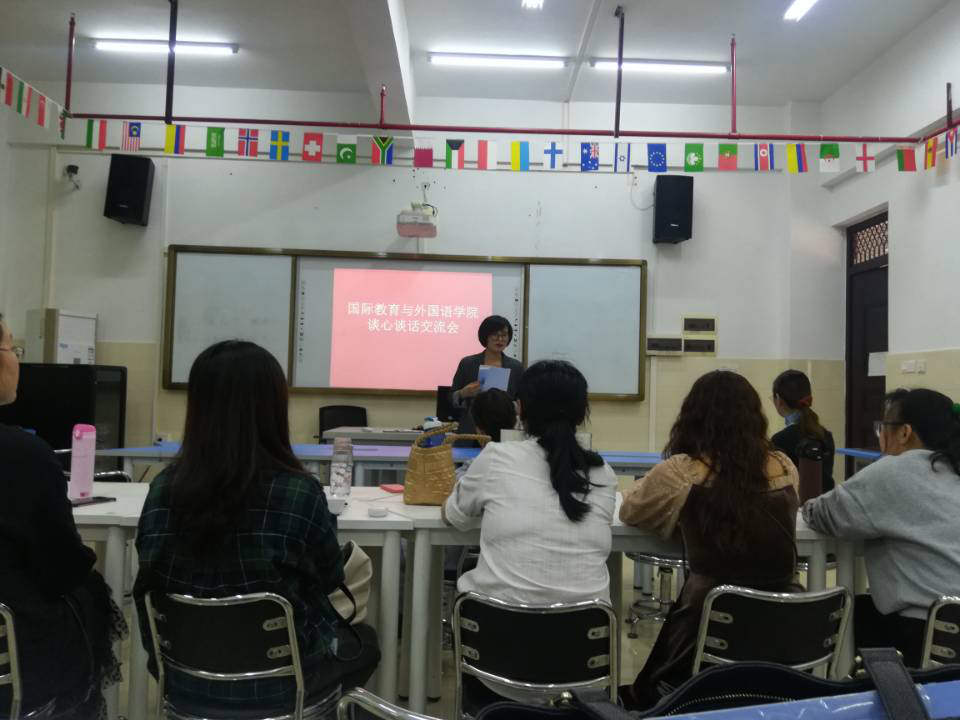 3月15日下午,国际教育与外国语学院全体班主任、辅导员在国际交流中心219会议室开展谈心谈话交流会,分享工作案例,交流与学生进行谈心谈话的心得。会议由学工办主任蓝水萍主持,学院全体班主任、辅导员参加。