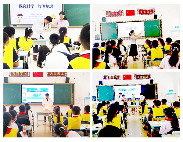理学院的老师和同学们分别在五年级和六年级开展了魔幻有趣的科普活动,活动内容不仅包括电磁炉点灯泡、水龙卷风、钻山洞的小火车、鱼洗、水柱导光、念动力魔术、神奇的悬浮水、听话的浮沉杯、乌鸦喝水的启示等物理探究实验,还包括穿越术、莫比乌斯带等数学探究实验。小学生们对每个实验都充满了好奇心,跃跃欲试,积极地和老师们互动,欢声笑语和积极抢答的声音此起彼伏。
