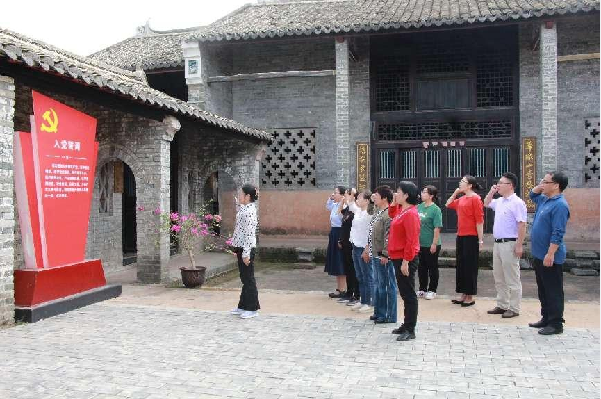 在新圩镇萍塘古村邓业懋故居、萍塘村革命斗争史纪念馆,党支部书记刘琼及党员干部一行16人聆听村支书邓忠奕同志讲解红色故事,并重温了入党誓词,缅怀革命先烈。在一幅幅珍贵的历史照片、一篇篇生动的文字介绍中,大家了解到了灵山县革命老区的“红色”历史,深感我国革命的胜利和新中国的成立是无数革命先烈用生命和鲜血换来的,要深刻缅怀革命先烈、铭记革命历史、继承红色光荣传统。