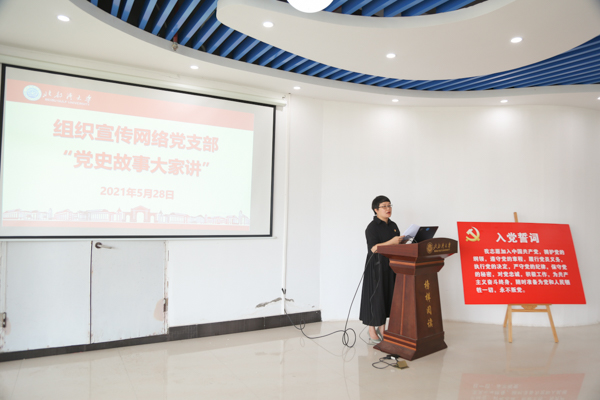 5月28日下午,组织宣传网络党支部在学校图书馆红色书屋开展了“党史故事大家讲”活动。支部党员韦雪敏同志在活动中讲述了建党百年中“飘萍一支笔,胜抵十万军”著名党员记者邵飘萍的故事。