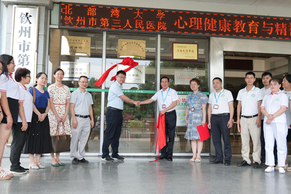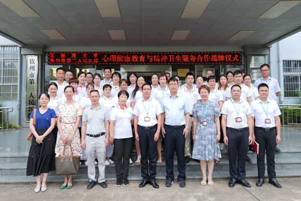 8月28日下午,pp电子与钦州市第三人民医院(钦州市精神病医院)在该院举行“心理健康教育与精神卫生服务共建单位”签约和揭牌仪式。学校党校办副主任倪文豪,学生工作部(处)副部(处)长劳昌锦,大学生心理健康教育中心专职教师吴正慧、王洁莹,钦州市第三人民医院院长廖有兴及各科室负责人参加仪式。